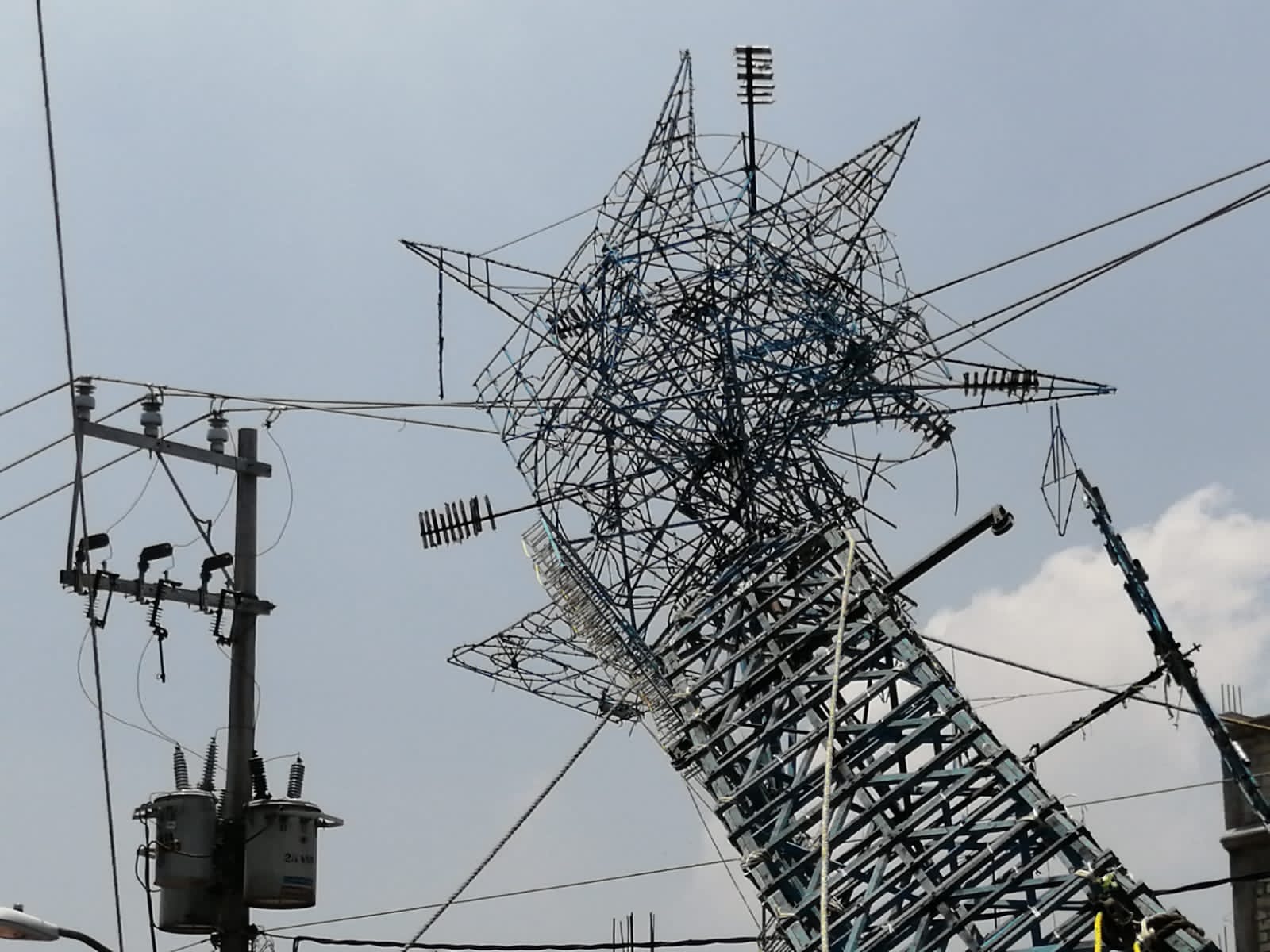 entre vecinos del lugar.  | | Así quedó entre los cables de la CFE |